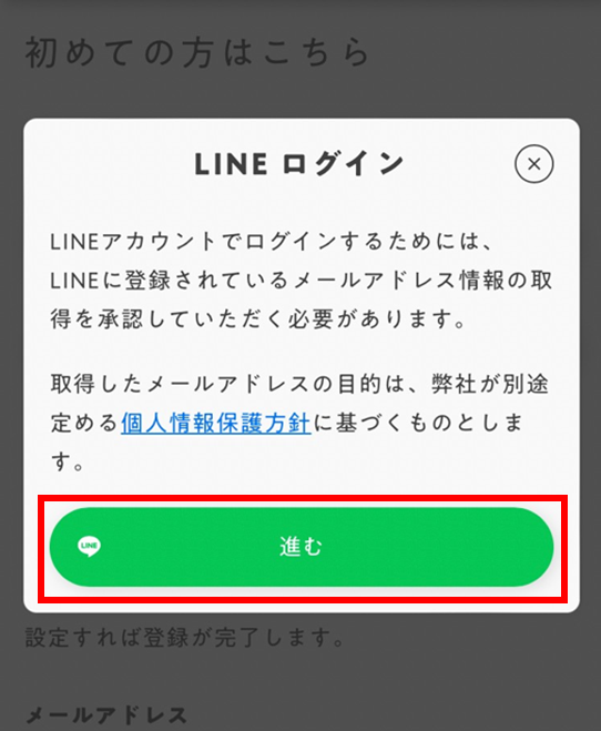 LINEアカウントを利用した会員登録が簡単なので、ここではLINEアカウントを使った会員登録方法をご紹介します。