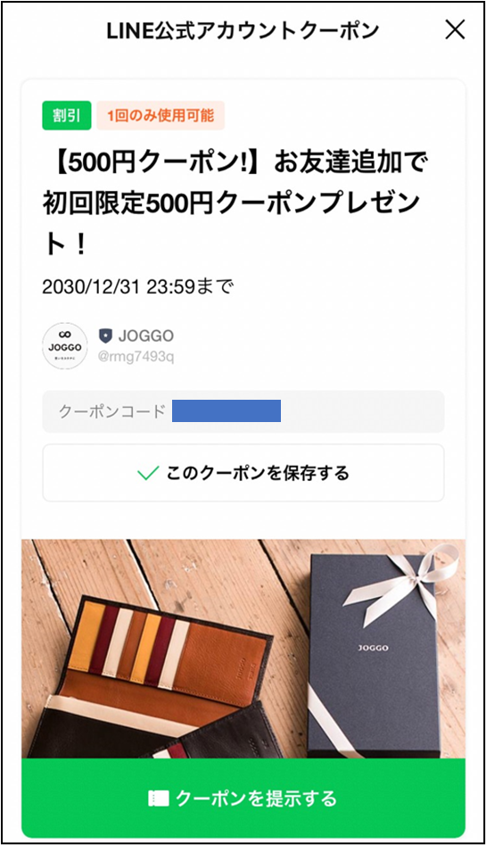 LINEクーポンは即日利用できますのでJOGGO(ジョッゴ)を友だち追加をして、お得にお買い物しちゃいましょう!