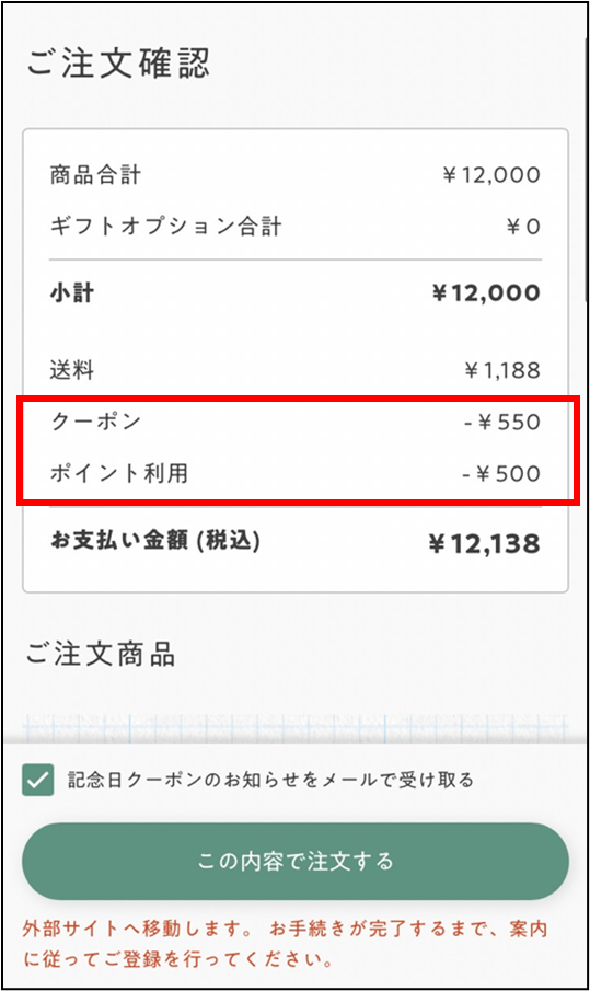 続いてクーポンとポイントの利用手順についてご紹介します。