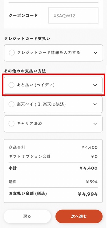 3.注文確定後のペイディの操作方法