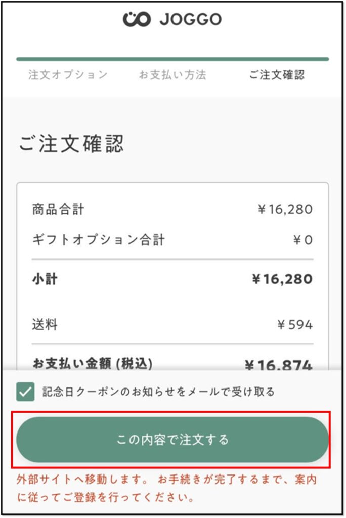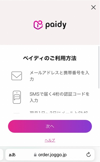 2.JOGGOをペイディ(Paidy)で購入する手順