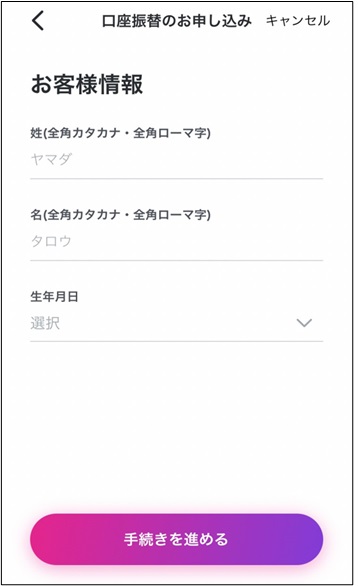 以降、お客様情報として必要事項を入力して口座登録を完了させます。