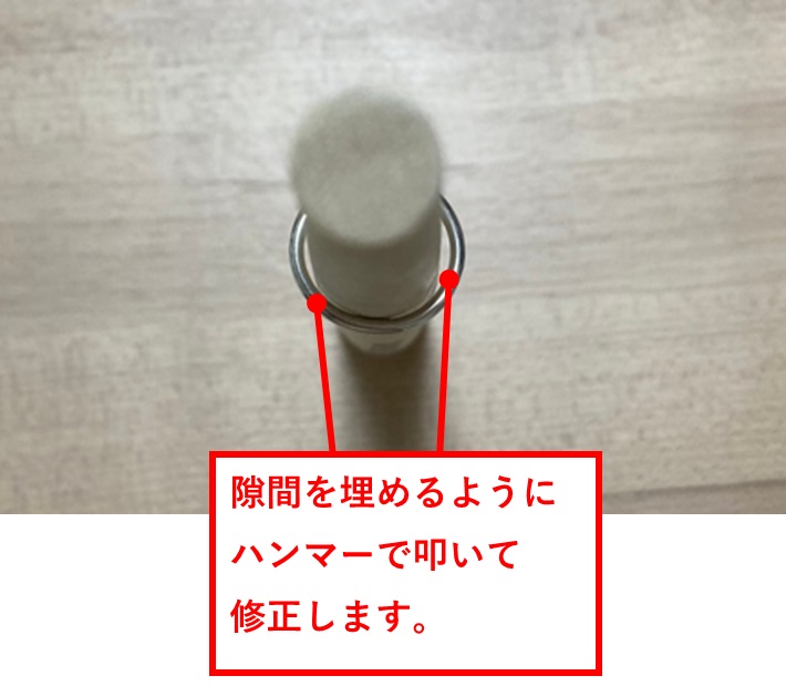 作成時に使用したハンマーと芯棒を組み合わせて写真立てとして再利用できます。